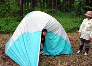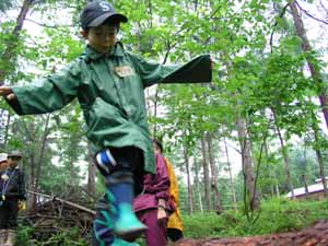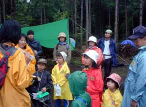 「夏のわんぱくキャンプ」 8月2日(土)〜3日(日) 白老町ウヨロ環境トラスト地 8月のわんぱく遊び隊は、1泊2日で白老町にあるウヨロ環境トラストの森でキャンプをしました。初日はあいにくの雨となりましたが、長靴で水溜りの中へバシャバシャと入っていくみんなは、雨も楽しんでいるようでした。 |