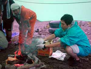 お父さんが中心になって、いつの間にか 「焚き火同好会」が出来ていました。 |