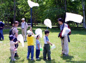 「昆虫ウォッチング」 6月21日(土) 10:00〜12:00 札幌市真駒内公園 38名の親子が集まって一緒に「昆虫ウォッチング」です。 みんな虫捕り網と虫かごを持って期待いっぱい!どんな虫と出会えるかな?? |