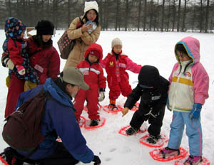 きょうは、雪の上を歩く道具「かんじき」をはいて、雪原に出掛けましょう。 いったいどんなものが見られるかな? |