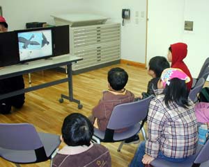 | 「ウトナイ湖へお出かけしよう!」 3月20日(土・祝) 苫小牧市 ウトナイ湖 ウトナイ湖は、野鳥がたくさんくることで有名な場所です。 まずは、野生鳥獣保護センターの中で、ハクチョウの「おーちゃん」紙芝居をみて、ハクチョウのことを楽しく学びました。 |