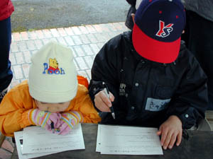アンケートの声 ★カメラで撮ることが、一番おもしろかった。目隠しイモムシが、一番つまらなかった。寒かった。また来たいです。 ★寒かったけど、とても楽しくて心はホットになりました〜。 |