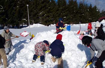あとは、ほってほってほりまくろう。 かまくらができたらおしるこがまってるよ! |