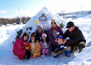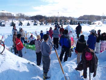 | 「作ろう、かまくら!食べよう、おしるこ!」 2005年1月15日(土) 真駒内公園 青空の広がるとても気持ちのいい1日でした。 |