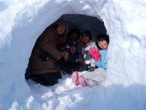 | 「かまくらのできあがり!」 かまくらでおしるこたべて あたたまろう!! |