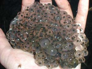 | 「カエルとは?!」 次は、室内でお話を聞きました。カエルって、どんな生き物だろう? エゾアカガエルの声をテープで聞いたり、本物のオタマジャクシとエゾサンショウウオをみたりしたよ。 今日会う予定は、「エゾアカガエル」だよ。春、雪がとける今の時期に卵を産むんだよ。 ![]() |