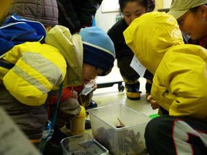 | アンケートの声 ★ドクゼリがおもしろかった。 ★えびがみれた。 ★動植物に実際に触れることができてよかった。 ★寒くてカエルがいなかったのが残念。 |