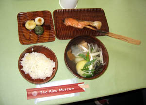 ★食事のメニュー 1日目 昼食 ・アイヌ民族伝統料理 夕食 ・チャンチャン焼きと焼肉、ごはん 2日目 朝食 ・ホットサンドイッチ、スープ、バナナ 昼食 ・やきそば、スープ、スイカ |