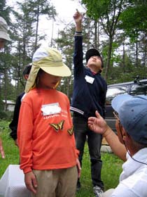 ウヨロ環境トラストの河野功さんは、白老では有名な「キアゲハ」おじさんなんだよ。みんなが放したキアゲハは、全部河野さんが、育てたんだよ。 |