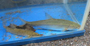 | 川遊びもしました!カゲロウの仲間、トビケラの仲間、フクドジョウとエゾウグイが捕れました。 |