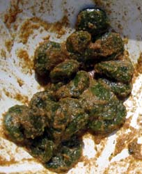 | 「おいしそうにできたよ!」 料理が出来る頃には、みんなお腹ペコペコ!すご〜い勢いで食べちゃいました。 ヨモギ味とタンポポ味のパウンドケーキ |