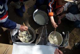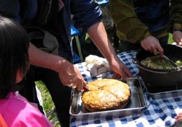 | 「草花クッキング!」No.40 2006年5月20日(土) 藻南公園(札幌市南区川沿) 草花クッキングは毎年大人気のプログラム。今年も40名を越す大所帯で、とっても賑やかな一日になりました。 |