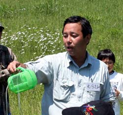 | 「たのしい昆虫ウォッチング!」No.51 2007年6月17日(日) 藻岩山スキー場(札幌市南区) 2007年6月17日(日)わんぱく遊び隊は、藻岩山スキー場で「楽しい昆虫ウォッチング!」を行いました。午前と午後の2回で、25組74名の皆さんが参加してくれました。ありがとうございます。 |