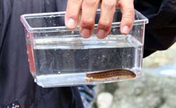 | 「いろいろ捕れたよ!」 寒かったけど、みんながんばっていろんな生き物を見つけてくれました。どんなものがいたかな?? さわらせてー! |