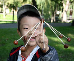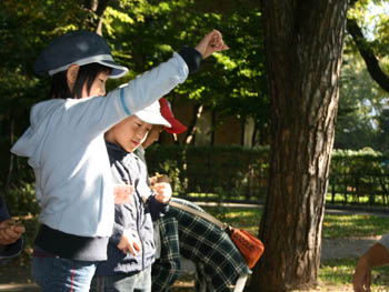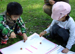 2007年10月6日(土)わんぱく遊び隊は、北大構内で「木の実であそぼう!」を行いました。当日は、晴れ。午前と午後2回実施で11組28名の皆さんが参加してくれました。ありがとうございます。 |
