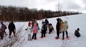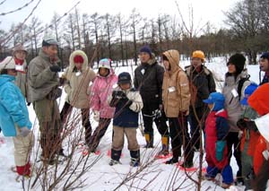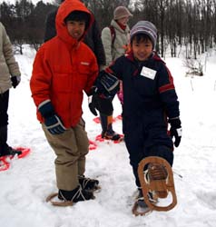 | かんじきはいて、いよいよ足あと探しにいきます。 見つけられるかな?? |