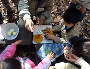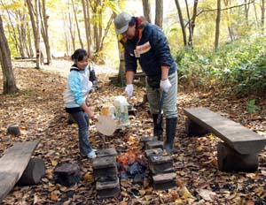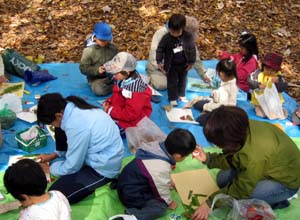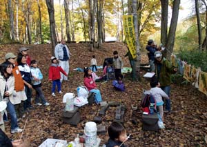 | 「 葉っぱであそぼう!たき火を囲もう!」No.80 2009年10月17日(土) 晴れ、時々くもり 札幌ふれあいの森 紅葉のきれいな秋の一日。森でゆっくり、あそびました!今年最後のわんぱく遊び隊!の様子をお伝えします。 |