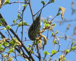 ○見られたもの:「植物」 キタコブシ(花)、カラマツ(花)、カツラ(花)、シラカンバ(花)、カタクリ(花)、エンレイソウ(花)、フクジュソウ(花)、エゾエンゴサク(花)、ニリンソウ(花)、エゾヤマザクラ(花)、ハウチワカエデ(蕾)、タチツボスミレ など 「野鳥」ヒヨドリ、メジロ、ヤブサメ、ヒガラ、マヒワ、カワラヒワ、ニュウナイスズメ など マヒワ |