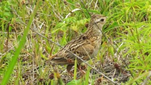 ○見られたもの:「植物」 ハマエンドウ、ハマボウフウ、ハマニンニク、エゾスカシユリ、ハマヒルガオ、クサフジ、コウボウムギ、コウボウシバ、ハマニガナ、ノブドウ、ノハナショウブ、イタチハギ、オオマツヨイグサ、ハマナス、キバナカワラマツバ、エゾカワラナデシコ、ノコギリソウなど 「野鳥」 ノゴマ、ノビタキ、コヨシキリ、ホオアカ、オオジュリン、ヒバリ、トビ、コムクドリ など ヒバリ |