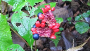 ○見られたもの:「植物」 ツチアケビ(実)、ウマノミツバ(実)、ホウチャクソウ(実)、ケチジミザサ(実)、ミズナラ(実)、オオカメノキ、カツラ、トチバニンジン(実)、ヤマシャクヤク(実)、マイヅルソウ(実)、エゾトリカブト(花)、サラシナショウマ(花)、ハイイヌガヤ(実)、ノブキ(実)、 など 「野鳥」 オオアカゲラ、コゲラ、ゴジュウカラ、ヤマガラ、シジュウカラ など 「その他」 エゾリス、オカモノアラガイ、エゾマイマイ、サッポロマイマイ、キノコいろいろ ヤマシャクヤク |