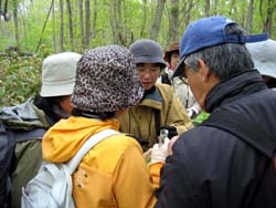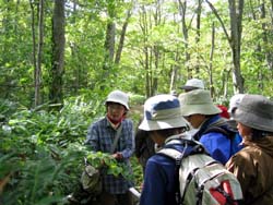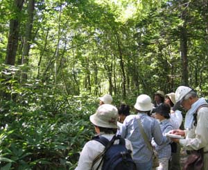 ○見られたもの:「植物」ケヤマウコギ、ウマノミツバ、ヤブニンジン、ヤブジラミ、ヤブマメ、エゾタツナミソウ、バイケイソウ、チシマアザミ、ウスゲヒロハハンノキ、ヤマグワ、コクワ、オオタチツボスミレ、ツルアジサイ、コナスビ、エゾスズラン、ハイイヌガヤ、ノリウツギ、タニタデ、ミヤマヤブタバコ、ハナニガナ、ケヤマハンノキ、カモガヤ、クサヨシ、アサダ、フタリシズカ、ハウチワカエデ、ベニイタヤ、アズキナシ、シウリザクラ、クリ、アズマナルコ、オオアワガエリ、オオチドメ、ヘラバヒメジョオン、クサイ、エゾヨモギ、ノラニンジン、ヨモギなど 「野鳥」キビタキ、センダイムシクイ、ツツドリ、ヤブサメ、カワセミ、ニュウナイスズメ、コゲラ、など 「その他」 オオミズアオ、オオアシトガリネズミ死体、ヒゲナガゾウムシ、エゾハルゼミ、エゾマイマイ、ヒラタシデムシの仲間、オオスズメバチ、ミスズチョウなど |