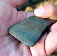 | 「カリカリウス遺跡発掘見学」 カリカリウス遺跡の奥の方で発掘が行われていました。園長椙田さんの案内で発掘現場を見学です。箇条書きで一部紹介します。 ・光っているのは黒曜石の破片。これも交易で十勝、白滝、置戸などから持ってこなければ無い。これは、黒曜石で石器を作ったときの破片。 ・きれいな「鑿(のみ)」。これもこの辺には無い石。木の柄をつけて使っていた。片刃なのがわかる。 ・摩周火山と支笏火山の地層がわかる。どの地層から、発掘されたかで年代がわかる。 などなど |
