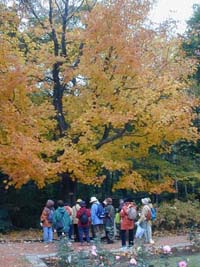 樹木の中身がすっかり無くなっているハルニレの木。 紅葉のきれいなサトウカエデの木 みんなできれいな落ち葉を拾ったり、くるくる回るかわいらしい種子を探したりしました。 |