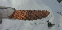 | 第4回目 豊平公園 2002年1月15日(火)10:00〜12:00 ○天候:晴 ○参加者:15名 ○講 師:自然ウオッチングセンター 島田、村野 ○研修生:鎌田、深田、住田 見られたもの:「植物」 ドイツトウヒ、トドマツ、アカエゾマツ、リキダマツ、シラカンバ、ニワウルシ、ヒヨクヒバ、キササゲなど 「野鳥」ハイタカ、ヒヨドリ、アカゲラ、ツグミ、シジュウカラ、ヤマガラ、ゴジュウカラ、マヒワ、カケス、ハシブトガラスなど 新年明けましておめでとうございます。今年も自然散歩を宜しくお願いします。 今年初のさっぽろ自然散歩は、「豊平公園」。 集合場所のすぐ近くに大きなマツボックリをいっぱいつけた大きなマツの木が立っていました。ここからウォッチング!樹高の高い「ドイツトウヒ」。いったい何メートルあるのでしょう?マツボックリも、特大です。→ ![]() |