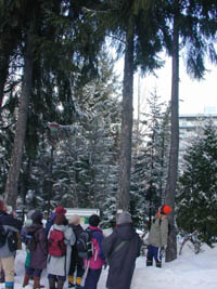 | 第3回目 大通公園 2001年12月18日(火)10:00〜12:00 ○天候:晴 ○参加者:15名 ○講 師:自然ウオッチングセンター 島田 ○研修生:鎌田 見られたもの:「植物」ニセアカシア、ハルニレ、ライラック(ムラサキハシドイ)、イチョウ、イタヤカエデ、プラタナス(モミジバスズカケノキ)、ハクウンボク、ヤマモミジ、ユリノキ、キタコブシ、ケヤキ、シンジュ、ハシドイ、ネグンドカエデ 「野鳥」オオタカ、ヒヨドリ、ドバト、アカゲラ、スズメ、ハシブトカラス、ハシボソガラスなど 良く晴れた大通公園で行われた「さっぽろ自然散歩」いつもは、何気なく通り過ぎてしまっている都会の中心部にも、よーく見るといろんな発見がありました。 |