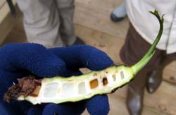 | 第5回目 森林総合研究所 2008年7月1日(火) 10:00〜12:00 ○天候:晴 ○参加者:26名 ○講 師:島田、村野 研修生:鎌田 |