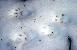 ○観察したもの:「植物」サワラ、ヒノキ、ヒノキアスナロ、イタヤカエデ、ドイツトウヒ、ニガキ、バンクスマツなど 「野鳥」 ヒヨドリ、アカゲラ、シジュウカラ、ヤマガラ、ゴジュウカラ、キバシリ、ウソ(鳴き声のみ)、ハシブトガラス など 「その他」 エゾリスの足跡、雪景色 ![]() |