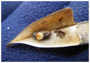 見られたもの:「植物」オオウバユリ、ヤチダモ、イヌエンジュ、セイヨウトゲアザミ、ガガイモ、アメリカセンダングサ、ホオノキ など 「野鳥」クマゲラ、オシドリ、マガモ など 「その他」 ベニテングダケ、キノコいろいろ、イヌエンジュの実にドングリ虫?、アカタテハ など イヌエンジュの実にどんぐり虫? |