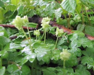 見られたもの:「植物」ポプラ、ヤマグワ、オオウバユリ(葉)、ホウチャクソウ(花)、ミツバ(葉)、ドイツトウヒ、ヒメフウロ(花)、ニリンソウ(花)、レンプクソウ(花)、ワスレナグサ(花)、オオタチツボスミレ(花)、マルスグリ(花)、ツルニチニチソウ(花)、キバナノアマナ(花↓)、ツボスミレ(花) 「野鳥」アカゲラ、センダイムシクイ、アカハラ、キビタキ、オオルリ、コサメビタキ、ハシブトガラ、アオジ レンプクソウ |