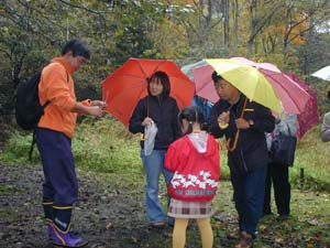 少し小降りになったのを見計らって 、野外で樹木や紅葉ウォッチング。 |