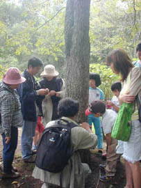 みんなで、「キハダ」の幹をよーく観察します。