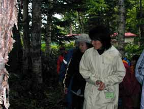 ○今日の活動の説明 これから何をするか? ・グループごとに面白い感覚を探してもらいます。昨日の振り返りを再確認。グループ内で話し合います。 ○ルートを案内 ルートの目印を記入した地図を渡し、グループごとに探してもらうルートを一通り案内しました。 ○グループごとに森に入り、おもしろい感覚のものを探す、発見する。 参加者にしてもらうこと ・最低一つ、形、色、手触り、雰囲気何でも良いので探す。 ・余裕があれば案内・プレゼンテーション方法も考える。 |