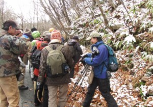 ※4月25日の観察会で見られたもの 植物:シラカンバ、ノリウツギ、ツノハシバミ、オニグルミ、ヤドリギ、オオツルツゲ、ショウジョウスゲ、アキタブキ(フキノトウ)、フデリンドウ(芽だし)、ホオノキ など 野鳥:マガモ、カワガラス、ヤマセミ、アカゲラ、ヒヨドリ、コゲラ、キセキレイ、ハクセキレイ、キクイタダキ、ハシブトガラ、シジュウカラ、ゴジュウカラ、ヒガラ、シメ など その他:エゾリス、ウスタビガの繭、虫こぶ など |