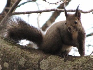 ※11月26日の観察会で見られたもの 天候:くもり 植物:シラカンバ(実)、オオバボダイジュ(実)、ミヤマガマズミ(実)、ハクウンボク、 など 野鳥:ヒヨドリ、カワガラス、マガモ、ハシブトガラ、ゴジュウカラ、アカゲラ、コゲラ、ヤマガラ、エナガ など その他:エゾリス エゾリス |