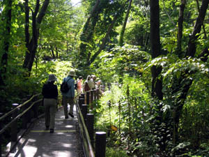 ○見られたもの:「植物」ミズナラ、シナノキ、エゾゴマナ、ミゾソバ、アキノウナギツカミ、オオアワダチソウ、ヌスビトハギ、オオバボダイジュ、クマイザサ、オオマルバノホロシ、ハッカ、コシロネ、ホソバアカバナ、ツリフネソウ、ヤマブドウ、トクサ、ツクバネソウ、ノリウツギ、ツルアジサイ、イワガラミなど 「野鳥」マガモ、アオサギ、カイツブリ、ゴジュウカラ、ヒガラなど 「その他」コイ、エゾリスなど |