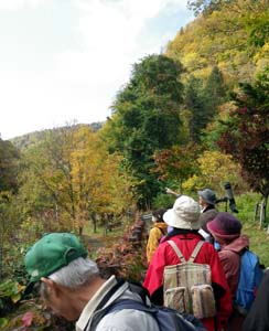 | 第4回目 定山渓遊歩道 2010年10月20日(水) 10:00〜12:00 ○天候:晴 ○参加者:14名 ○講 師:長谷川、中嶋、鎌田 |