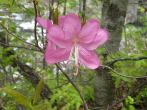 ○見られたもの:「植物」 ムラサキヤシオ、イワキンバイ、オオカメノキ、シラネアオイ、オクエゾサイシン、エゾノイワハタザオ、オドリコソウ、ヒメオドリコソウ、ナンブソウ など 「野鳥」キビタキ、センダイムシクイ など 「その他」 エゾハルゼミ、エゾサンショウウオ卵 ムラサキヤシオ |