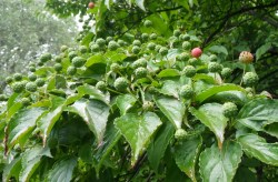○見られたもの:「植物」 イチョウ、イチイ、ハエドクソウ、エゾゴマナ、オオウバユリ、ライラック、シナサワグルミ、ヤマボウシ、トチノキ、ブナ、トリカブト、ヤマゴボウ、ゴボウ、ウマノミツバ、オオスズメウリ、マルバフジバカマ、カタバミ、ゲンノショウコ、ハリギリ など 「野鳥」 ヤマガラ、ハシブトガラ など ヤマボウシ |