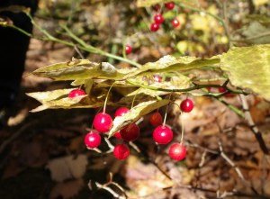 ○見られたもの:「植物」 ハウチワカエデ、イタヤカエデ、アカイタヤ、アクシバ(実)、コシアブラ、ルイヨウショウマ(実)、アズキナシ(実)、ツルシキミ、ツバメオモト(実)、ミヤマガマズミ(実)、フッキソウ、ツクバネソウ(実)、ミズナラ、ハリギリ など 「野鳥」 カワガラス、など 「その他」 古い蜂の巣 アクシバ実 |