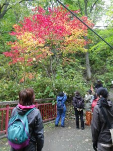 | 第4回目 定山渓遊歩道 2012年10月17日(水)10:00〜12:30 ○天候:曇 ○参加者:15名 ○講 師:長谷川、中嶋、鎌田 |