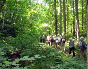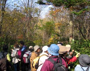 ○見られたもの:「植物」イチイ、キツリフネ、ミゾソバ、ハナタデ、ハイイヌガヤ、アオミズ、ノブキ、エゾシロネ、ヤブマメ、ヤブハギ、ノッポロガンクビソウ、セントウソウ、ヒメシロネ、フタリシズカ、シオデ、サイハイラン、ルイヨウショウマ、タカアザミ、ユウゼンギク、オオタチツボスミレ、アキノウナギツカミ、ツルシキミ、エゾノキツネアザミ、など 「シダ」オオメシダ、コウヤワラビ、エゾフユノハナワラビ、ヤマイヌワラビ、オシダ、クサソテツ、ヒメシダ、ミヤマベニシダ、リョウメンシダ、シラネワラビ、ナライシダ、ミゾシダ、など 「その他」 ハモグリバエ、ツチハンミョウ、エゾマイマイ、フキバッタ など |