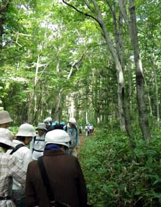 ○見られたもの:「植物」カノツメソウ、マムシグサ、アカエゾマツ、トドマツ、オシダ、エゾフユノハナワラビ、キツリフネ、ヤマドリゼンマイ、クサソテツ、コウヤワラビ、オオメシダ、トリアシショウマ、サラシナショウマ、アサダ、チョウセンゴミシ、キンミズヒキ、ユウゼンギク、エゾノコンギク、ジュウモンジシダ、アカソ、クサコアカソ、ミゾシダ、ゲンノショウコ、ミヤマベニシダ、ミヤマガマズミ、ハウチワカエデ、フッキソウ、ミズキ、ヤマグワ、ノブキ、ムカゴイラクサ など 「野鳥」 ウグイス、ツグミなど 「その他」 エゾマイマイ、サッポロマイマイ、ザトウムシ、ミカドフキバッタ、ヒトヨダケ など |