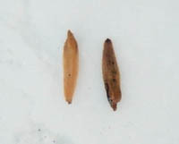 折れて落ちていたトドマツの枝に、鬼の角のようなものを発見!![]() これはいったいなんでしょう?? トドマツの枝です。 ![]() →のところが発見した鬼の角? これが名付けて「鬼の角」! トドマツのマツボックリの芯でした。 ![]() 今日の発見標本箱。左から、「トドマツ」(鬼の角が付いている)、「ドイツトウヒのマツボックリ」、「ドイツトウヒの葉っぱ」、「ニワウルシの実」です。スタート地点だけでこれだけの発見がありました。この後もいろんな木の実や匂いのする木などなどいろいろ観察できました。 |