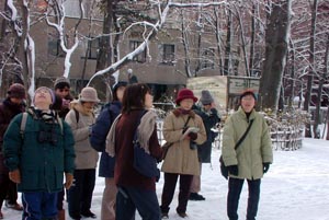 | 第3回目 北大構内 2003年12月8日(月) 10:00〜12:00 ○天候:曇 ○参加者:11名 ○講 師:自然ウオッチングセンター 島田、村野 ○研修生:鎌田 |