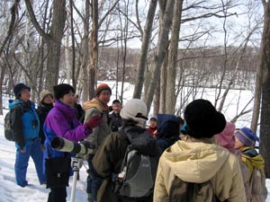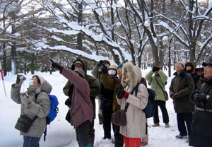 | 第5回目 野幌森林公園 2006年2月21日(火) 10:00〜12:00 ○天候:晴れ ○参加者:20名 ○講 師:村野、鎌田 |