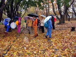 | 冬 第2回目 月寒公園 2006年11月7日(火) 10:00〜12:00 ○天候:雨 ○参加者:22名 ○講 師:島田、村野 研修生:鎌田 |